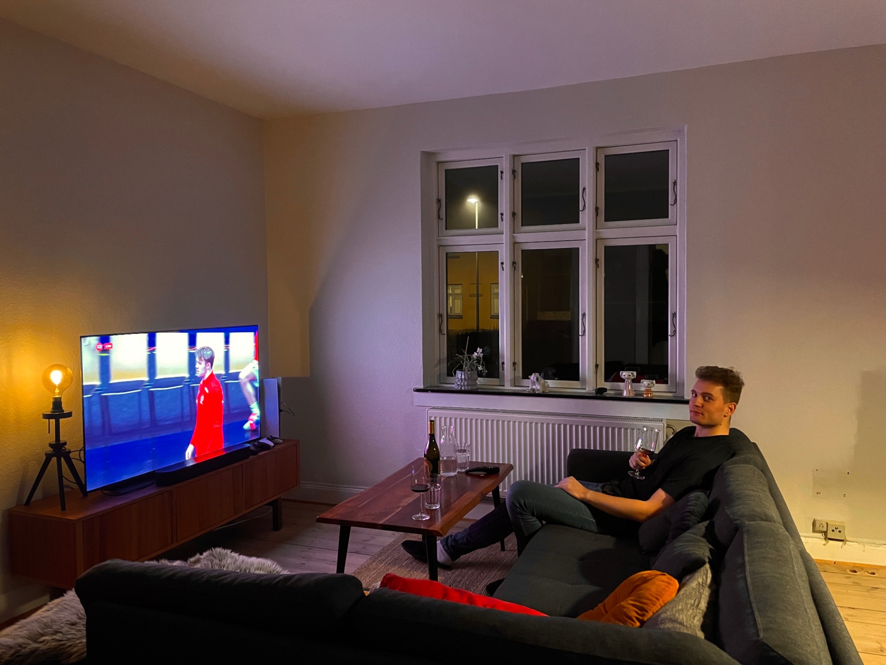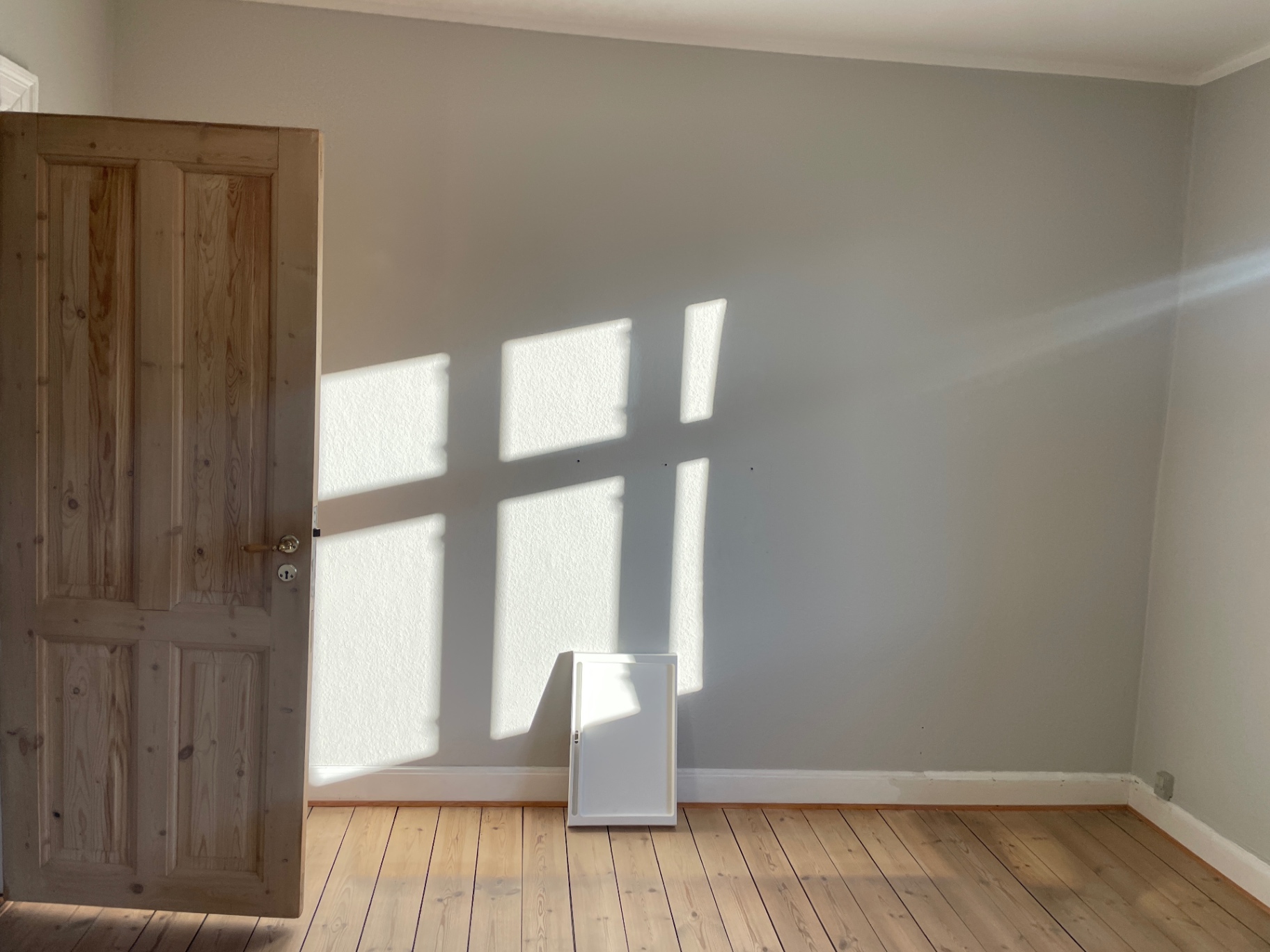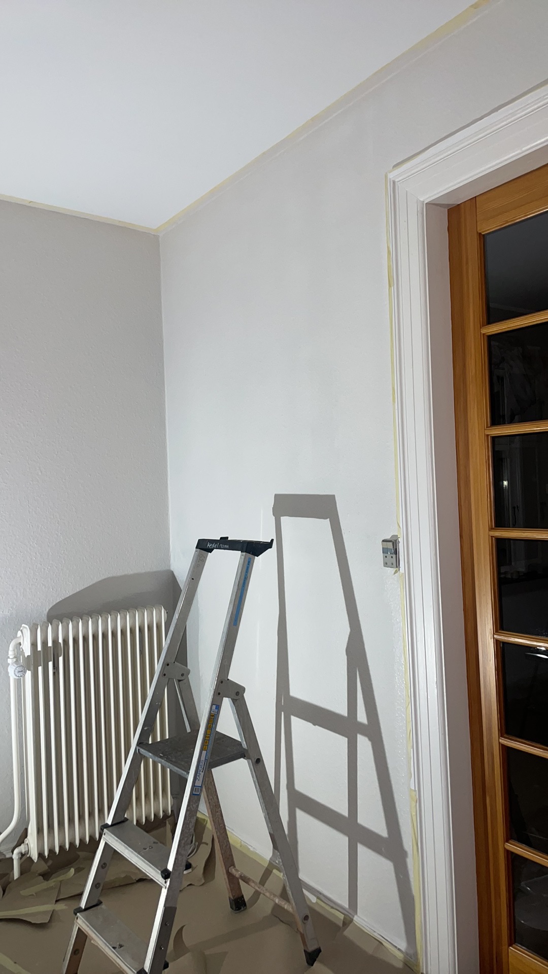 De steder hvor vi har beholdt det smukke savsmuldstapet, har vi malet i en fin farve fra Flügger - Oat