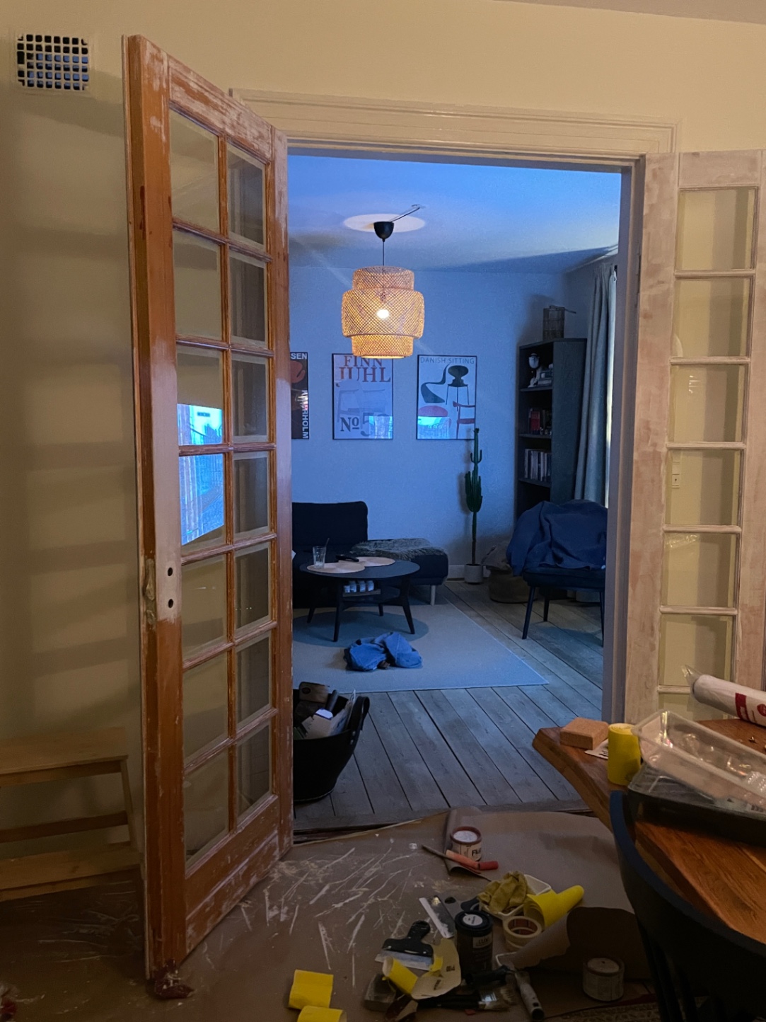 Maling af dobbeltdør i stuen